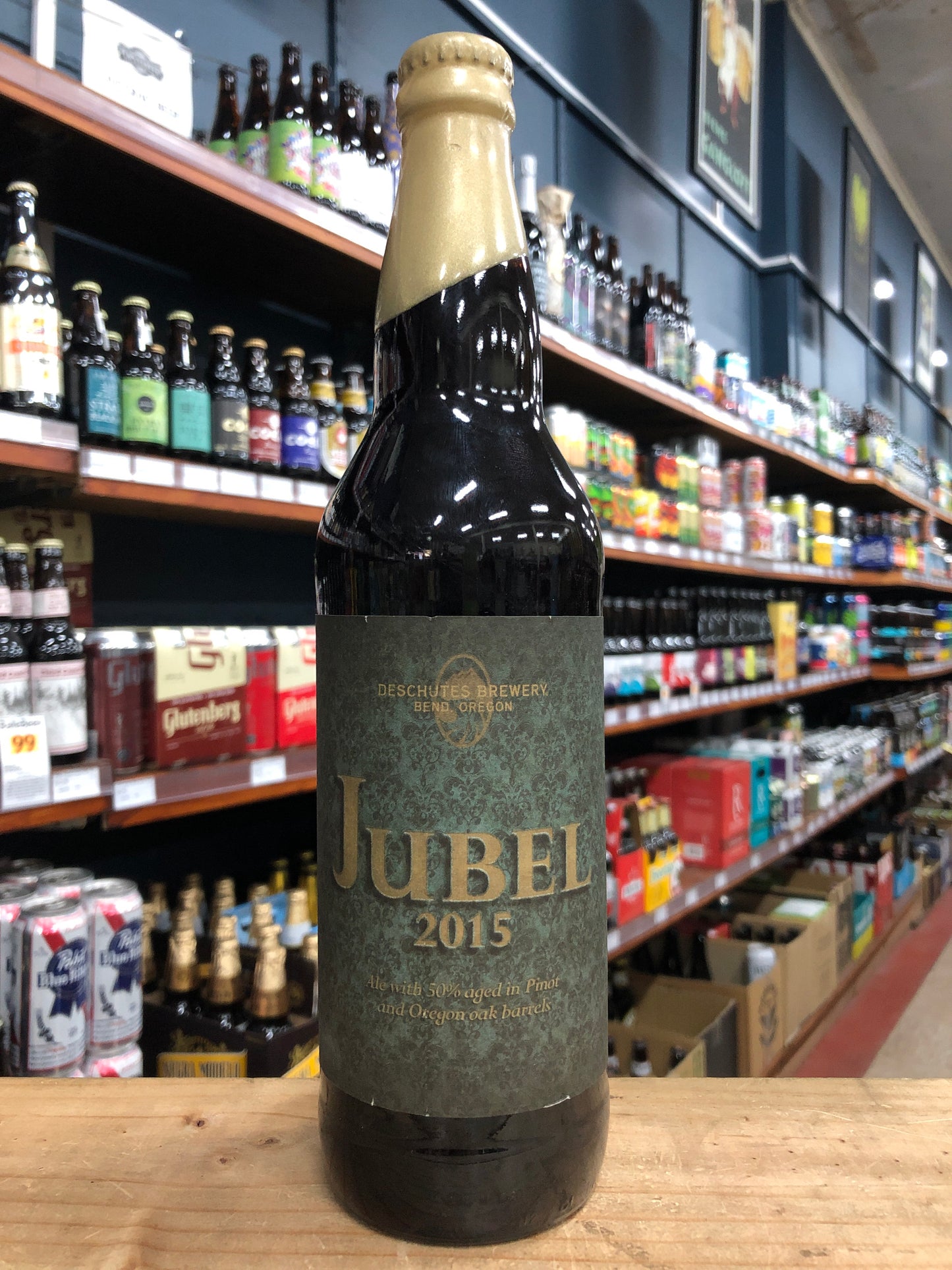 Affectionately referred to as �Super Jubel�, Jubel 2015 is an imperial take on our festive winter ale. Notes of toasted caramel, raisins, dates and figs are complemented by spicy and herbal hop aromas. Originally planned as a once-a-decade-ale; we just couldn�t wait another five years. Malt: Pale, Special B, Crystal, Roasted Barley, Flaked Barley Hops: Millennium, Nugget, Cascade, Willamette, US Tettnang, East Kent Goldings Barrel-Aging: (50%) 12 Months in Pinot Noir and new Oregon Oak Released at our pubs & tasting room on February 6, 2015.